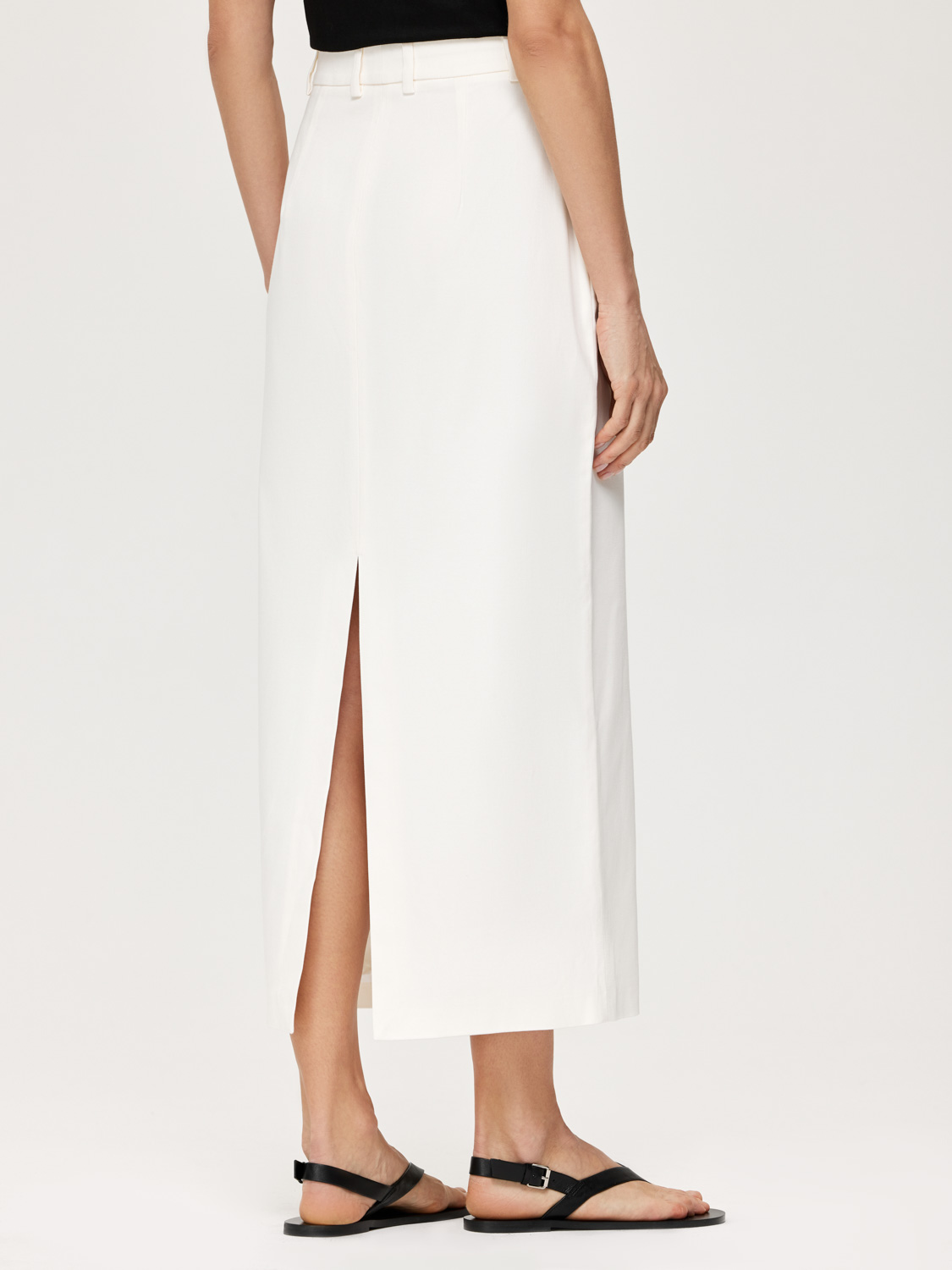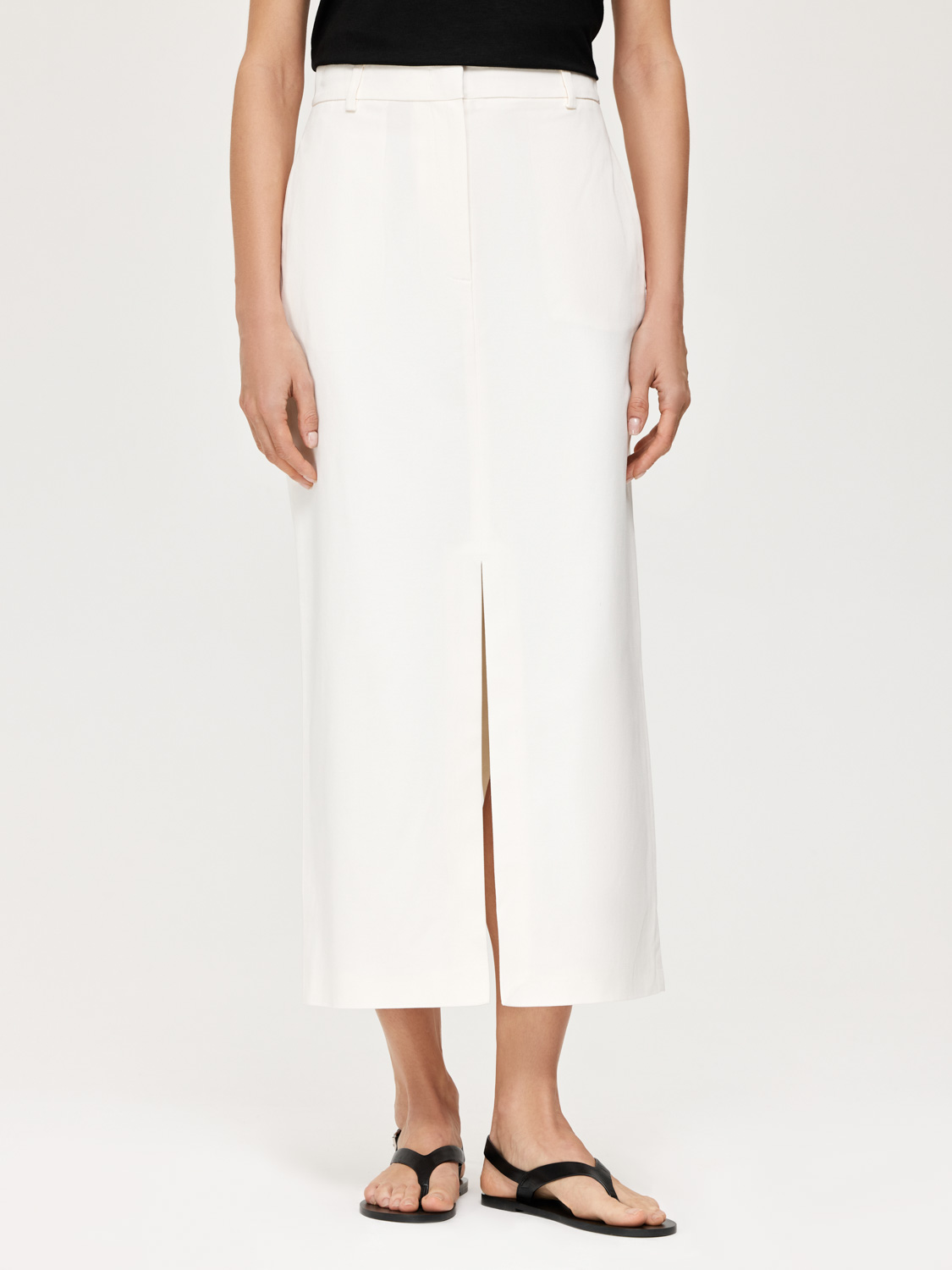 Юбка длиной мидакси с посадкой на талии – основа для создания элегантных повседневных образов. Пояс со шлевками, которые можно дополнить ремнем. Выполнена из плотного хлопка, укрепленного эластаном. Такой материал отличается прочностью и износостойкостью. Юбка с подкладкой. Двойной разрез добавляет оригинальности и не сковывает движение. Носите с кроп-топами, блузами, рубашками и жакетами. Дополняйте босоножками, кедами и сандалиями. На модели размер S. Параметры модели: рост 178, 82-62-89.