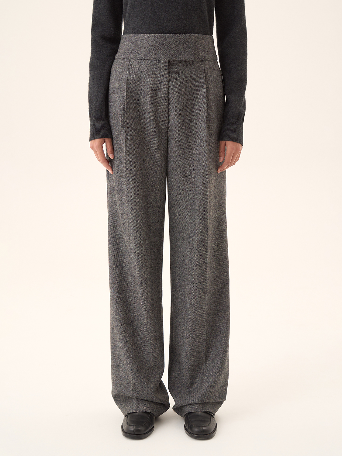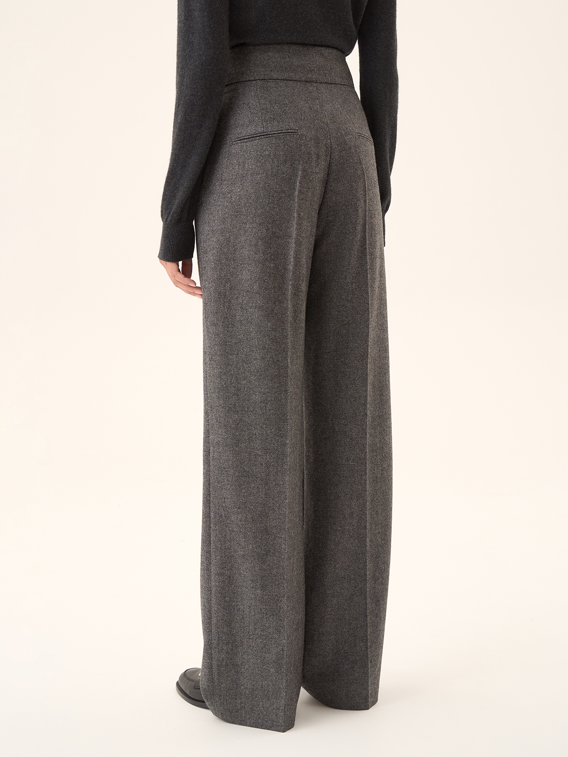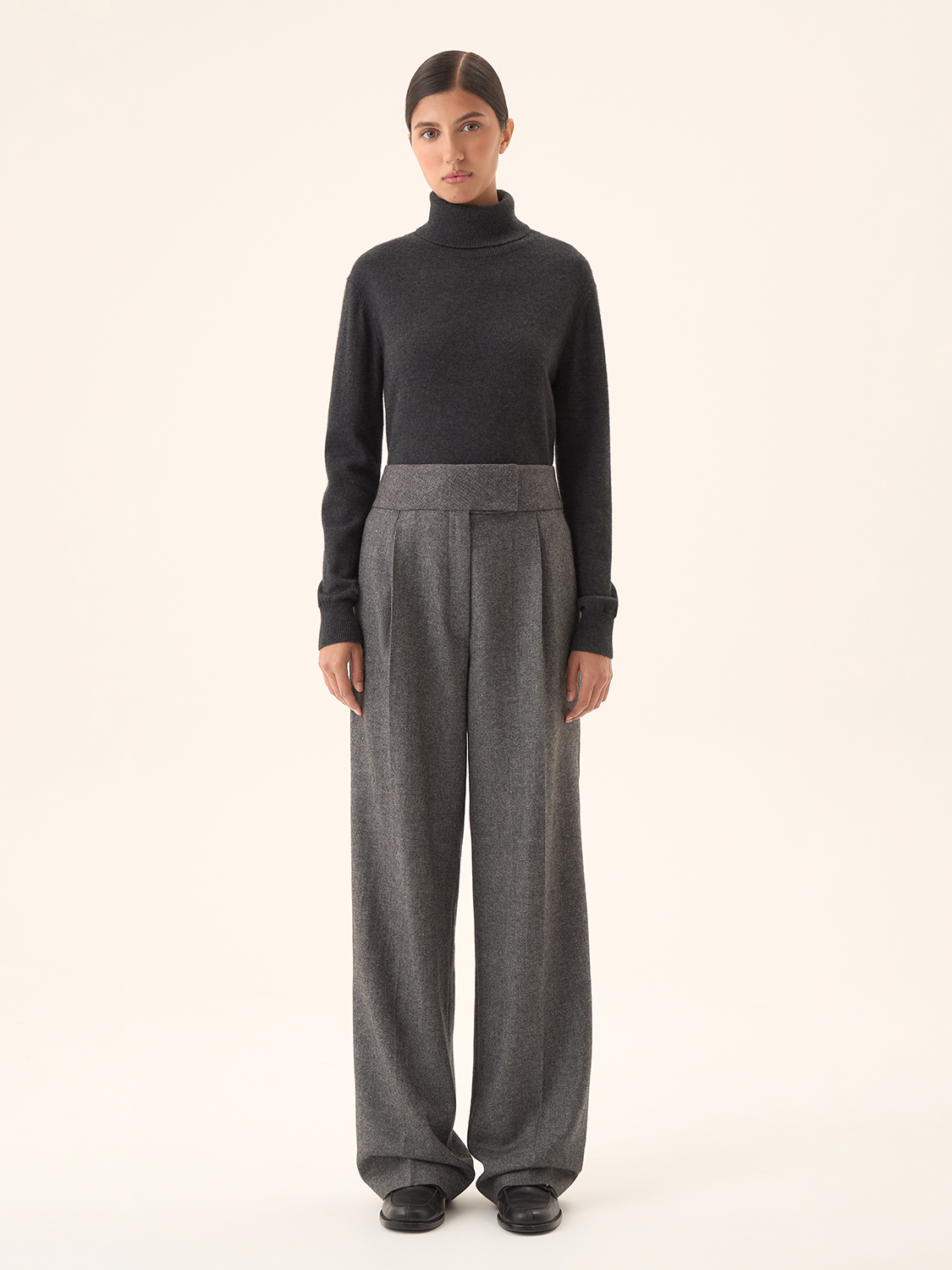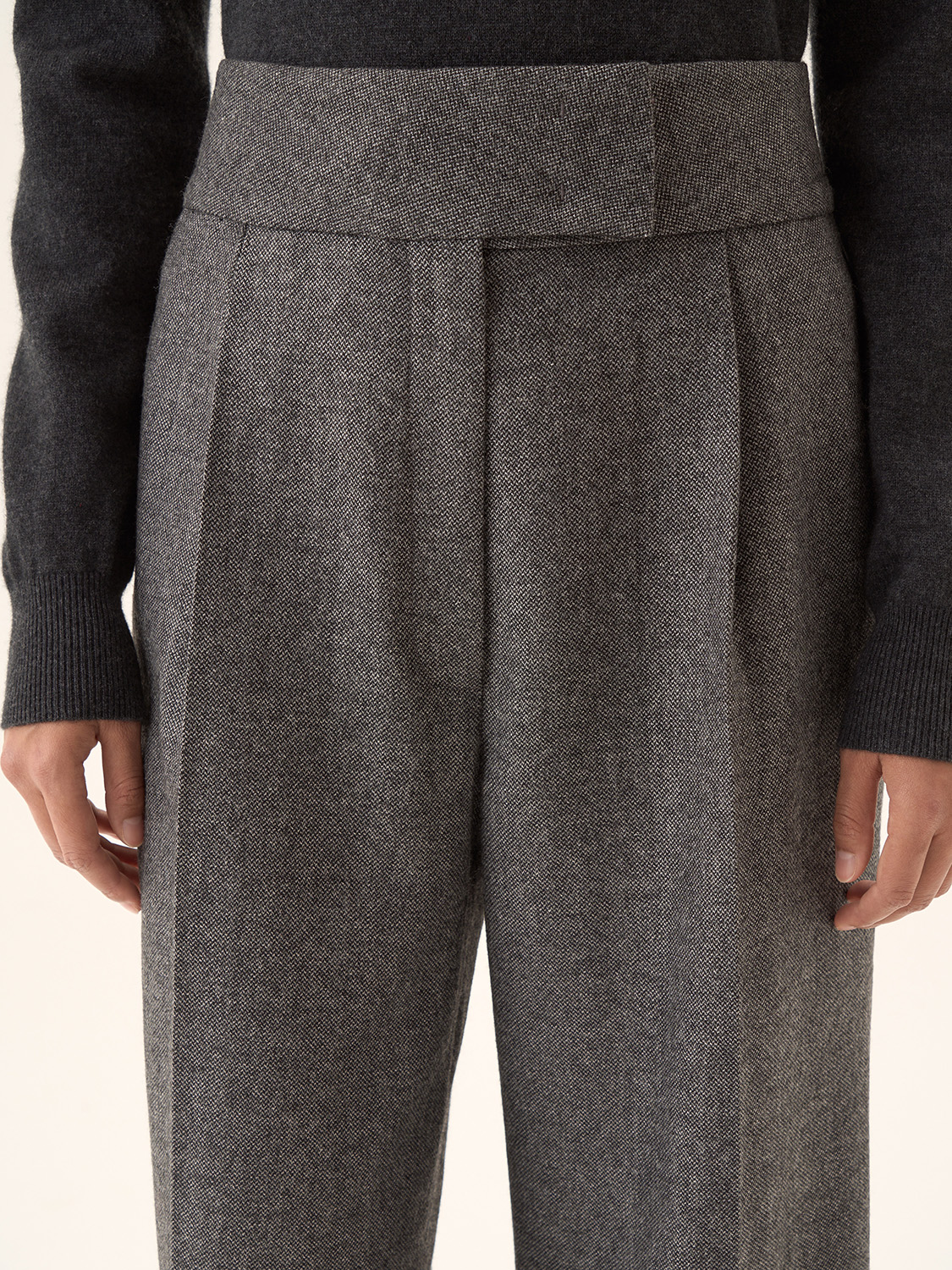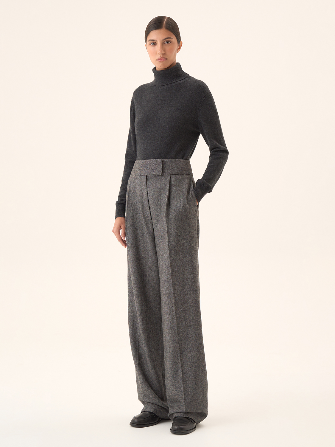 Свободные брюки со стрелками — это идеальный выбор для создания элегантного, но расслабленного образа. Широкий крой обеспечивает свободу движений, а четкие стрелки добавляют структуру и строгость силуэту. Пояс с высокой посадкой подчеркивает талию, делая эти брюки универсальными для делового или повседневного стиля. Ткань с текстурой придает образу дополнительный шарм, а спокойный цветовой тон делает их идеальными для комбинирования с разными топами и жакетами. Параметры модели: рост 174 см, размер S.