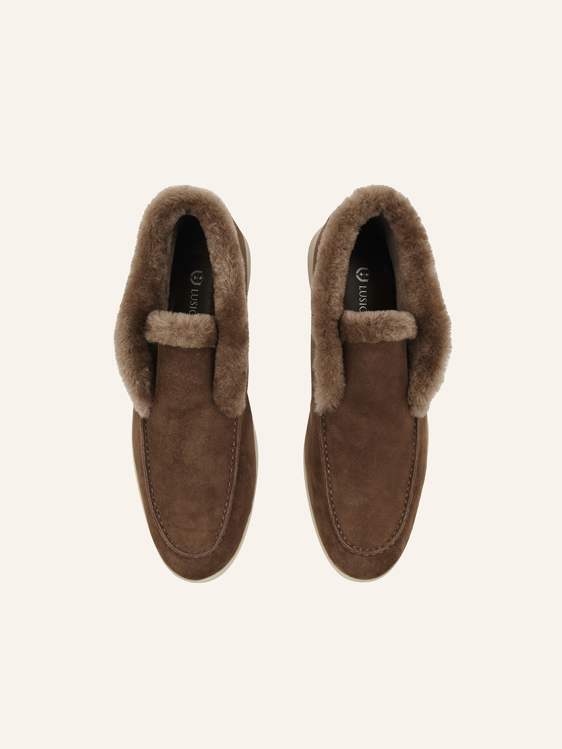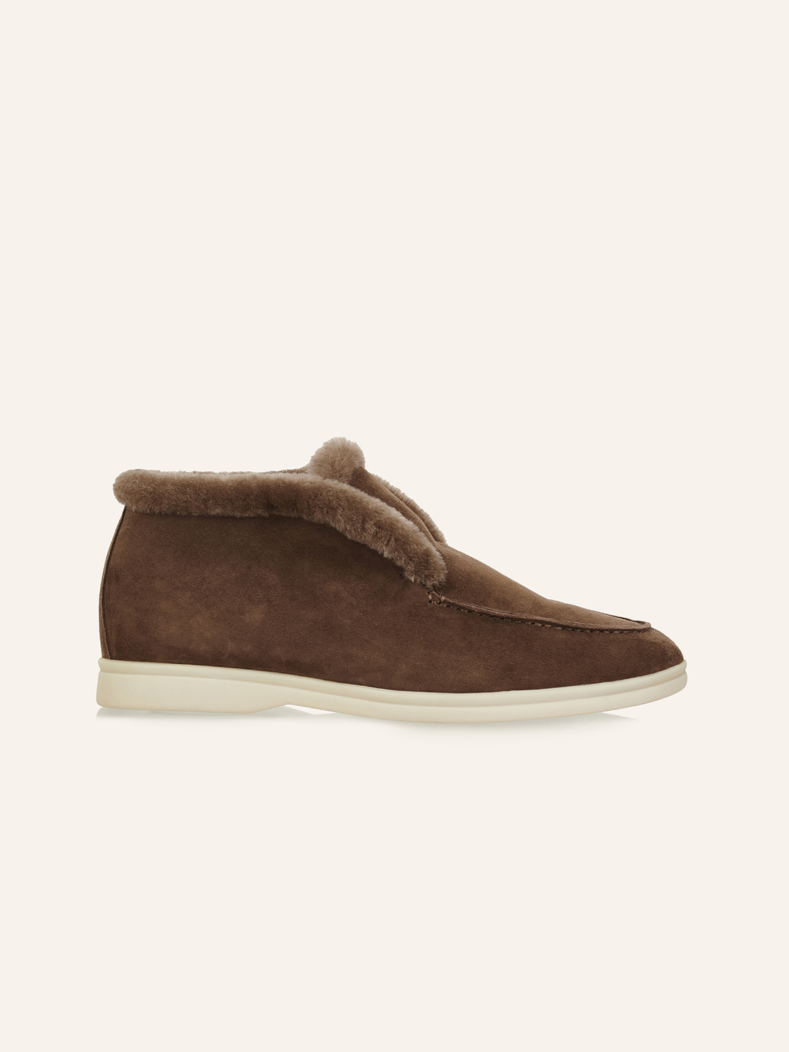 Эти утепленные лоферы из натуральной замши — стильное решение для прохладных дней. Благодаря подкладке, они сохраняют тепло, а мягкая замша придает им элегантный вид и комфорт. Прочный материал и продуманный дизайн делают эту модель универсальной: она гармонично вписывается как в повседневные, так и в деловые образы. Удобная подошва и надежная конструкция обеспечивают максимальный комфорт при ходьбе, а лаконичный стиль позволяет сочетать лоферы с разнообразными элементами гардероба, от брюк до юбок, создавая безупречные аутфиты на каждый день.