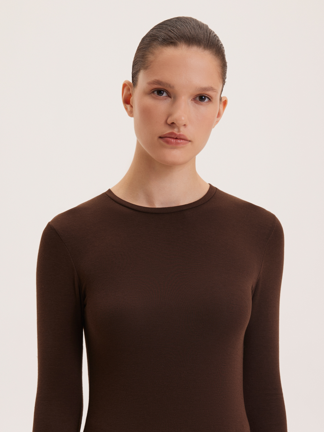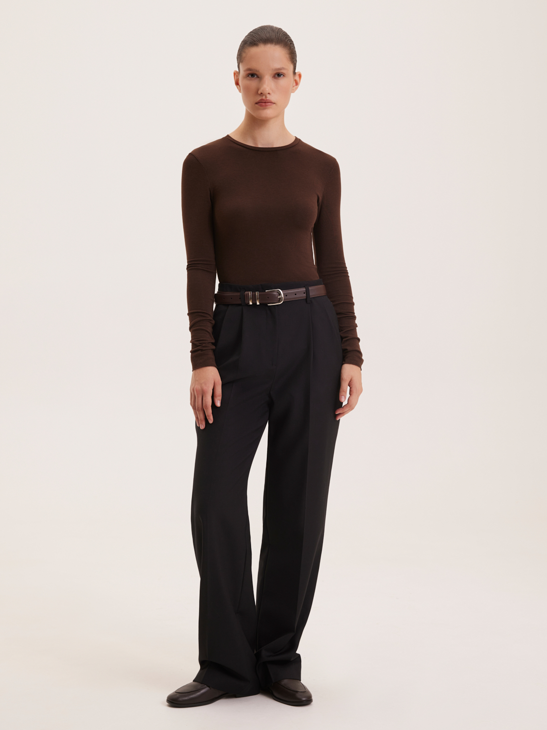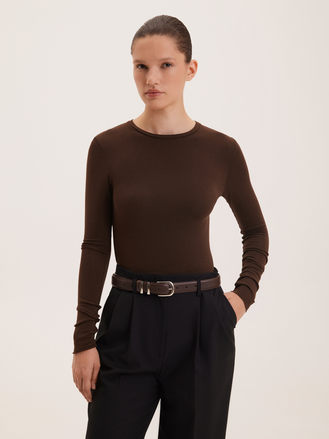 Параметры модели: 176/85/60/89 На модели размер: S Лонгслив с добавлением шерсти выполнен в лаконичном стиле, что делает его универсальной вещью для создания множества базовых образов. Его минималистичный крой подчеркивает естественную элегантность и подходит как для деловых, так и для повседневных ансамблей. Лонгслив гармонично сочетается с классическими брюками или джинсами, создавая как строгий, так и расслабленный образ. Этот лонгслив идеально подходит для создания многослойных образов в холодное время года. Носите его под жакет или кардиган для дополнительного тепла.